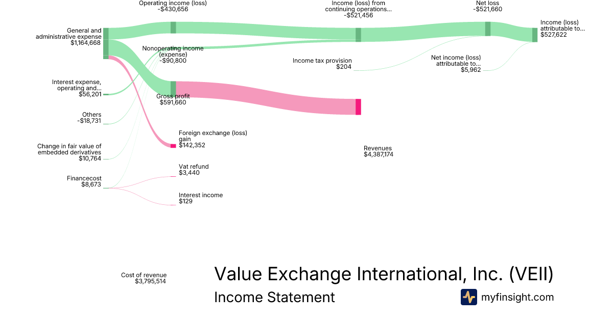 For the quarter ending 2024-09-30, VEII made $4,387,174 in revenue. $527,622 in net income. Net profit margin of 12.03%.