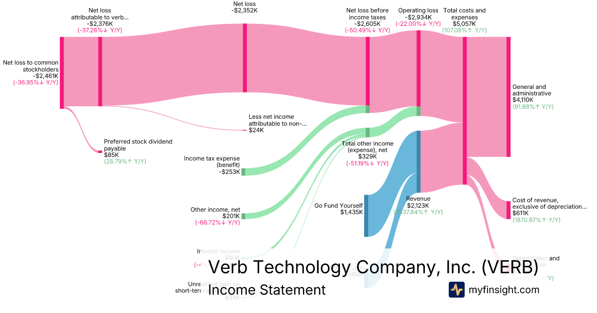 For the quarter ending 2025-06-30, VERB made $2,123K in revenue. -$2,461K in net income. Net profit margin of -115.92%.