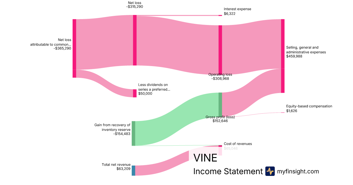 For the quarter ending 2024-09-30, VINE made $63,209 in revenue. -$365,290 in net income. Net profit margin of -577.91%.