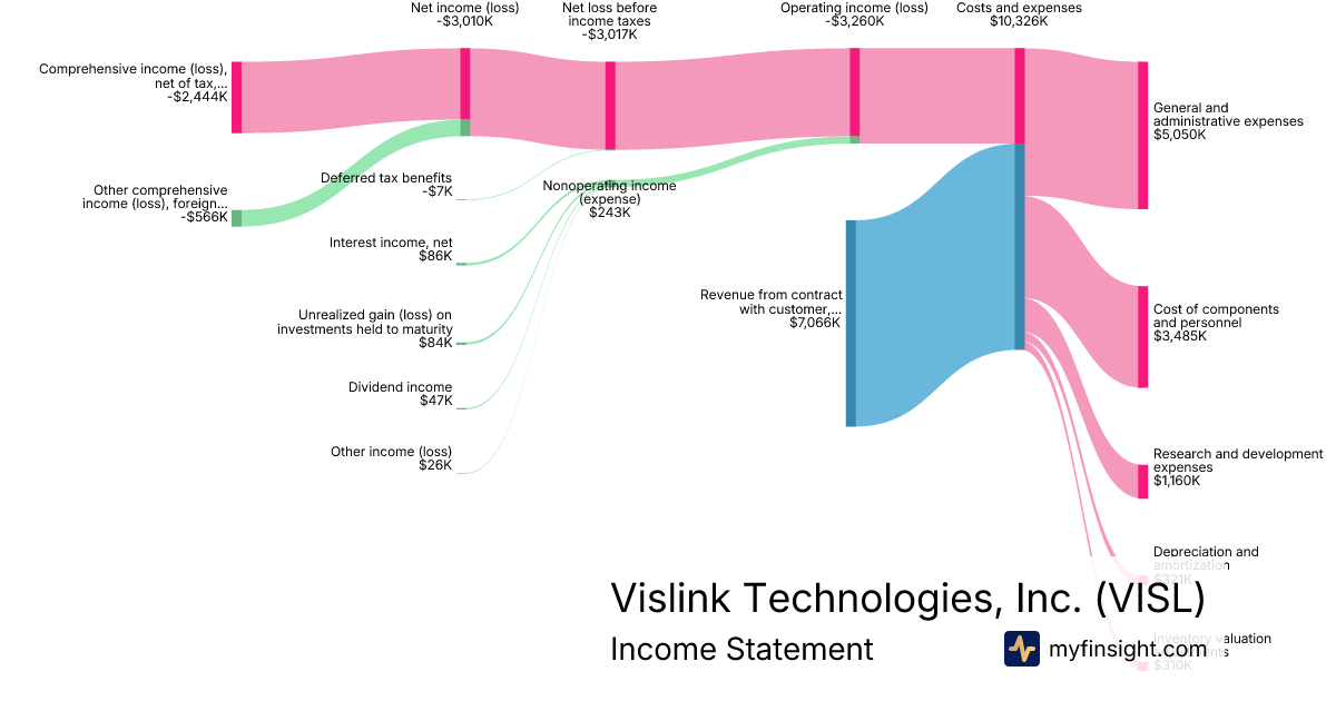 For the quarter ending 2024-09-30, VISL made $7,066K in revenue. -$2,444K in net income. Net profit margin of -34.59%.