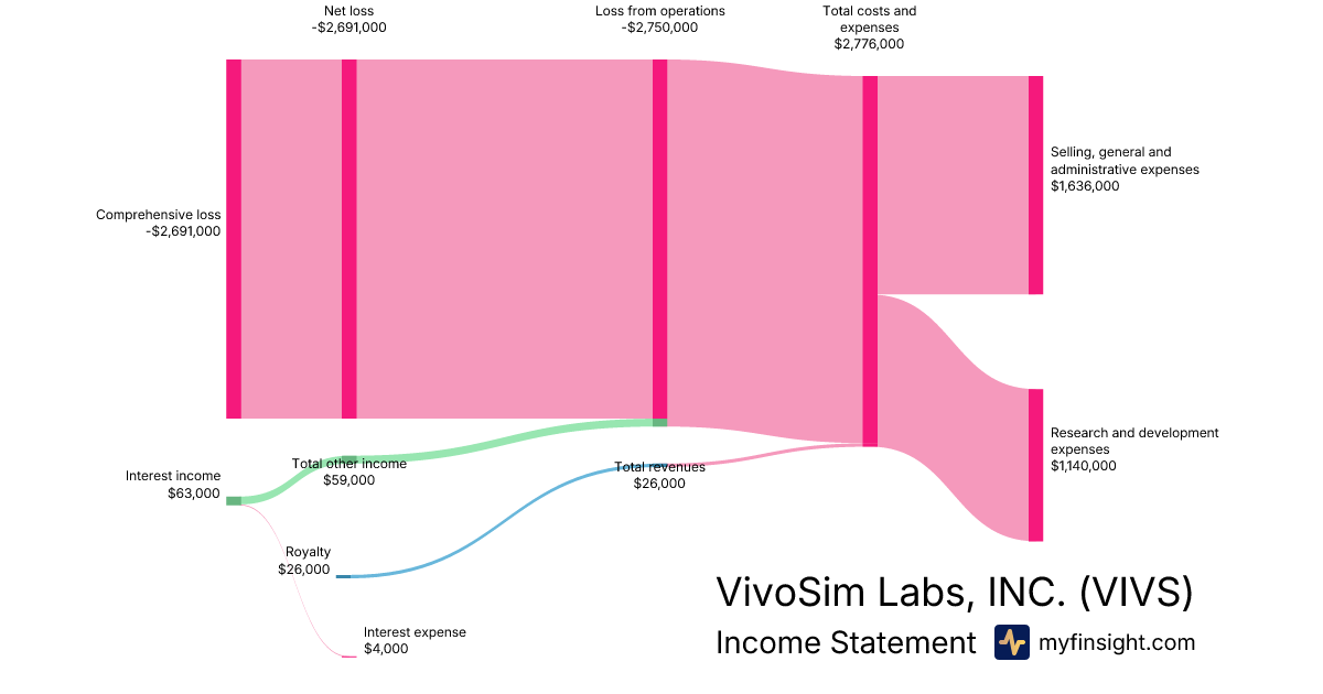 For the quarter ending 2025-12-31, VIVS made $26,000 in revenue. -$2,691,000 in net income. Net profit margin of -10350.00%.