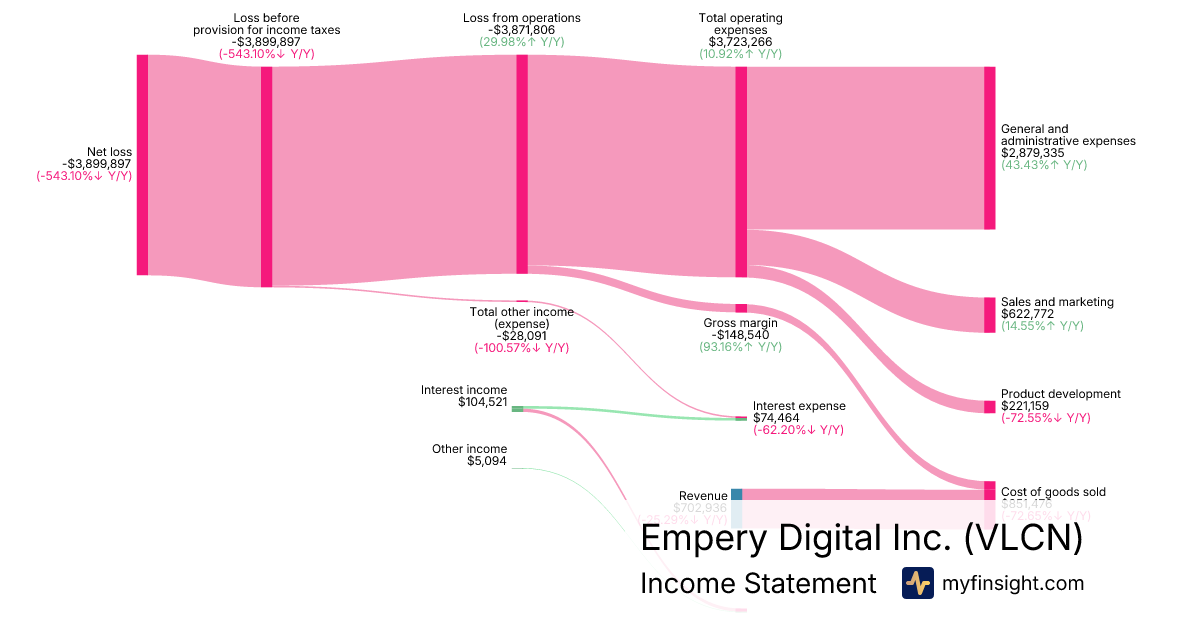For the quarter ending 2025-06-30, VLCN made $702,936 in revenue. -$3,899,897 in net income. Net profit margin of -554.80%.