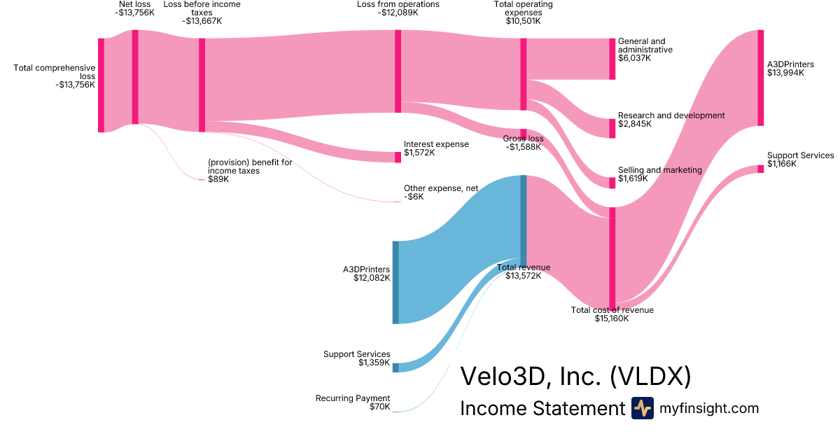 For the quarter ending 2025-06-30, VLDX made $13,572K in revenue. -$13,756K in net income. Net profit margin of -101.36%.