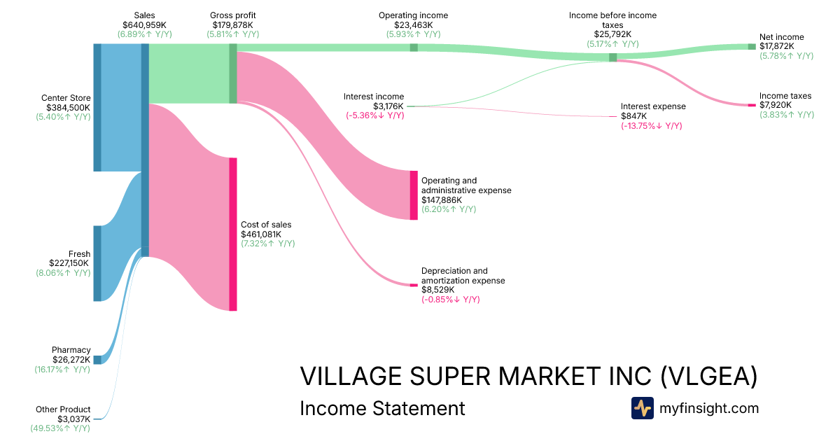 For the quarter ending 2026-01-24, VLGEA made $640,959K in revenue. $17,872K in net income. Net profit margin of 2.79%.