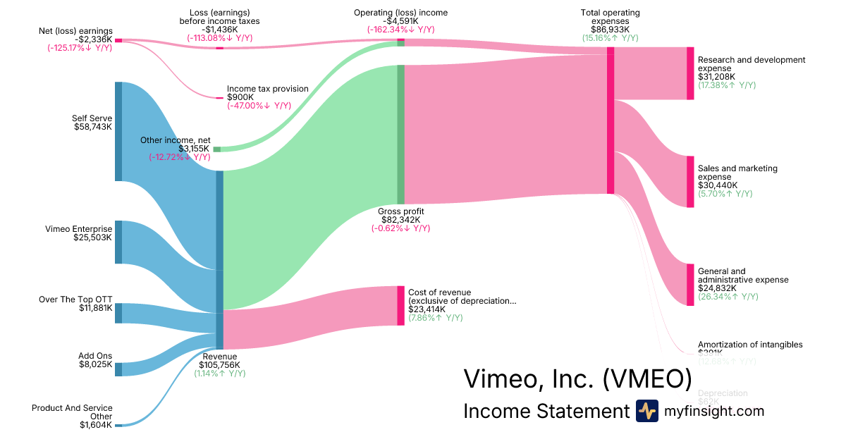 For the quarter ending 2025-09-30, VMEO made $105,756K in revenue. -$2,336K in net income. Net profit margin of -2.21%.