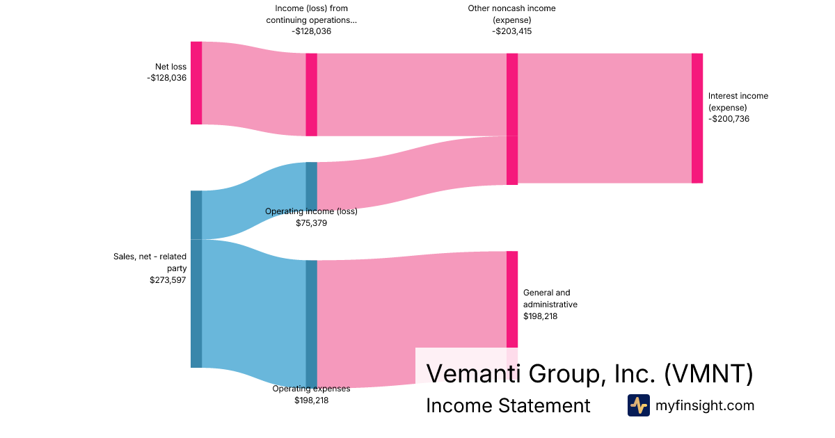 For the quarter ending 2024-09-30, VMNT made $273,597 in revenue. -$128,036 in net income. Net profit margin of -46.80%.