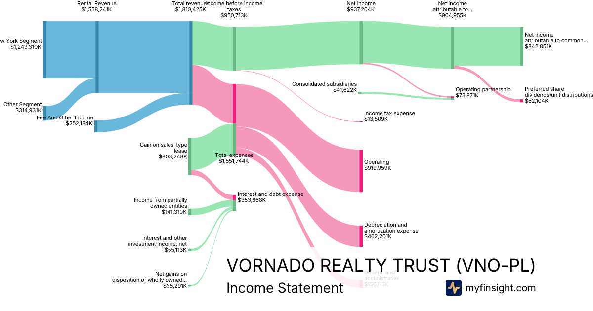 For the year ending 2025-12-31, VNO-PL made $1,810,425K in revenue. $842,851K in net income. Net profit margin of 46.56%.