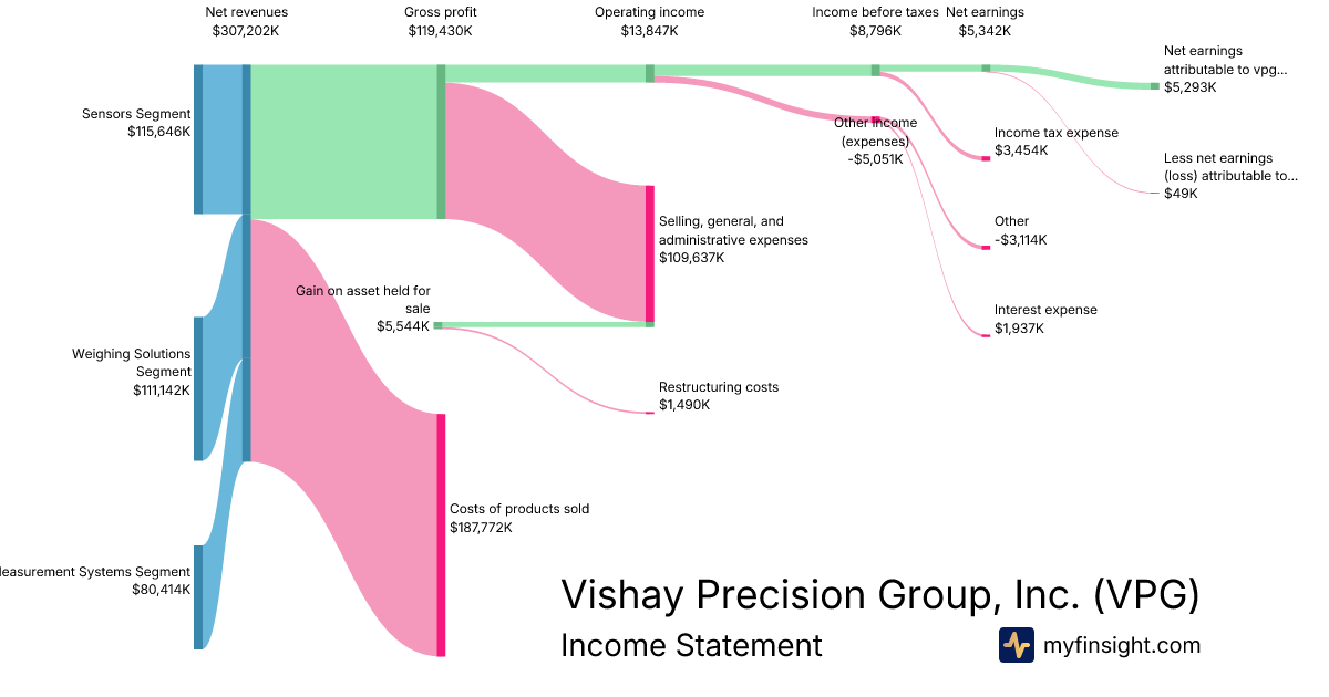 For the year ending 2025-12-31, VPG made $307,202K in revenue. $5,293K in net income. Net profit margin of 1.72%.