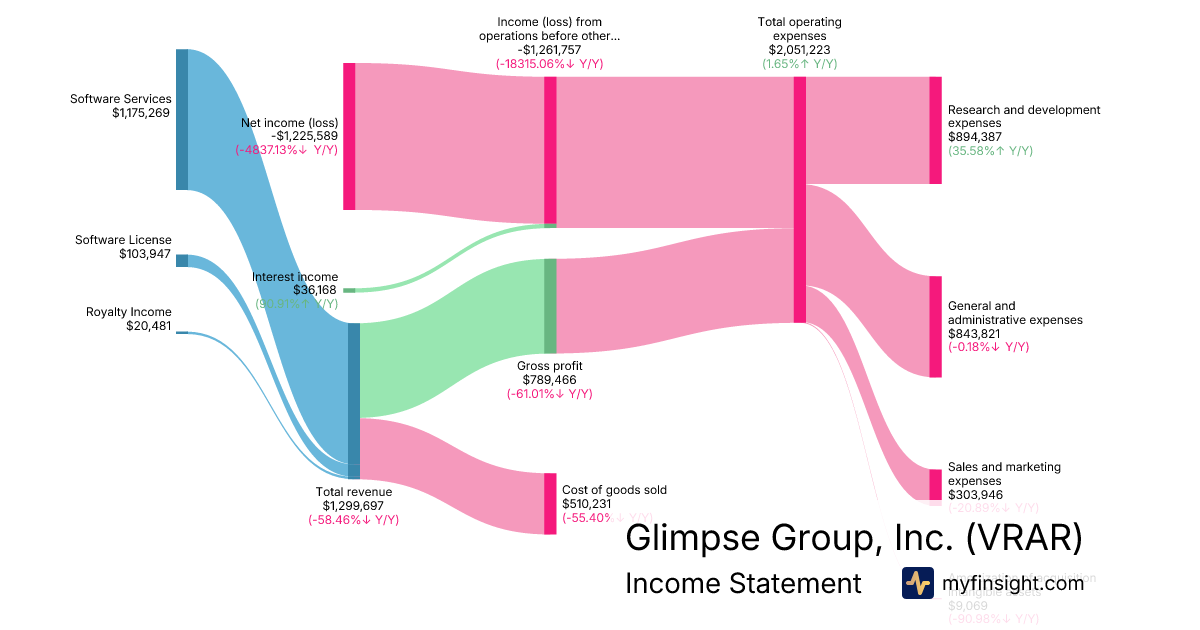 For the quarter ending 2025-12-31, VRAR made $1,299,697 in revenue. -$1,225,589 in net income. Net profit margin of -94.30%.