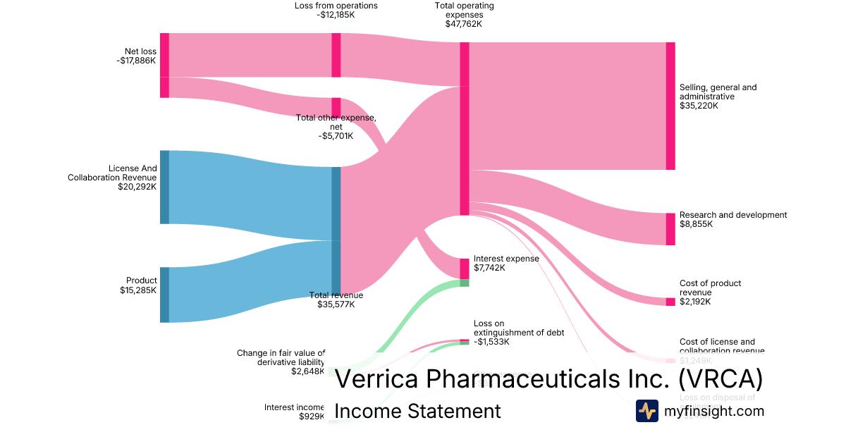 For the year ending 2025-12-31, VRCA made $35,577K in revenue. -$17,886K in net income. Net profit margin of -50.27%.