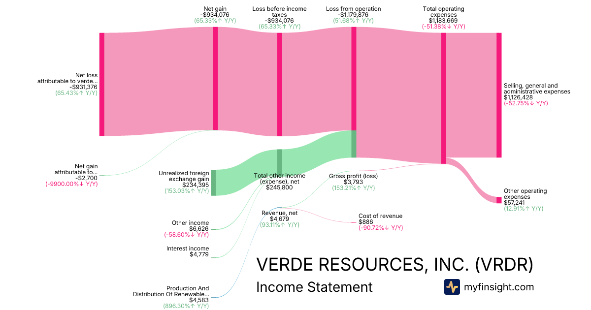 For the quarter ending 2025-12-31, VRDR made $4,679 in revenue. -$931,376 in net income. Net profit margin of -19905.45%.