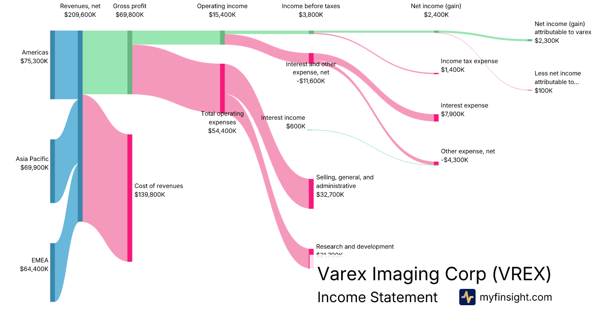 For the quarter ending 2026-01-02, VREX made $209,600K in revenue. $2,300K in net income. Net profit margin of 1.10%.