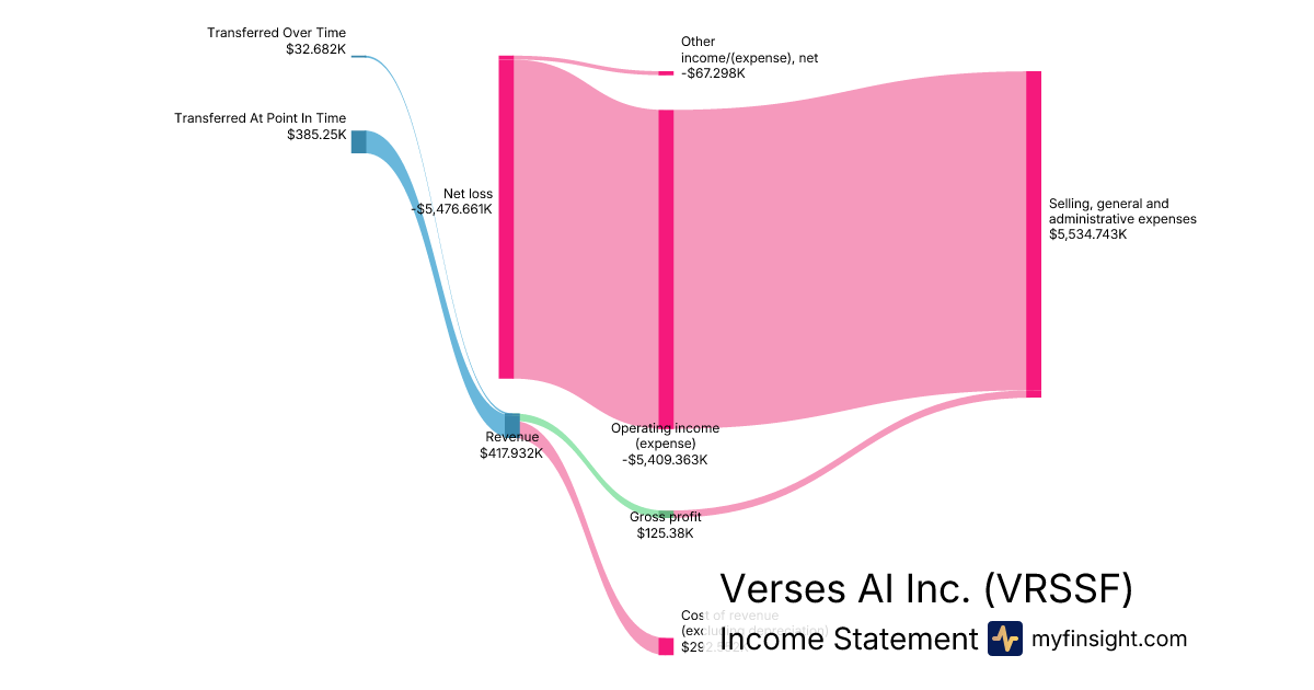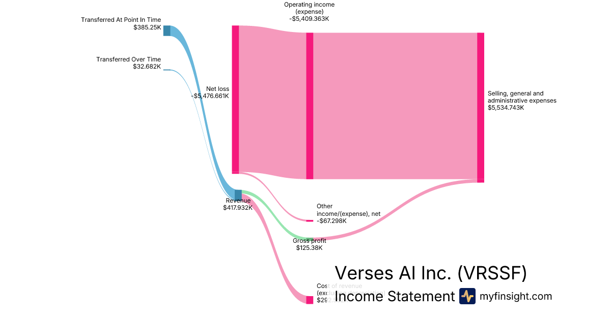 For the quarter ending 2025-12-31, VRSSF made $417.932K in revenue. -$5,476.661K in net income. Net profit margin of -1310.42%.
