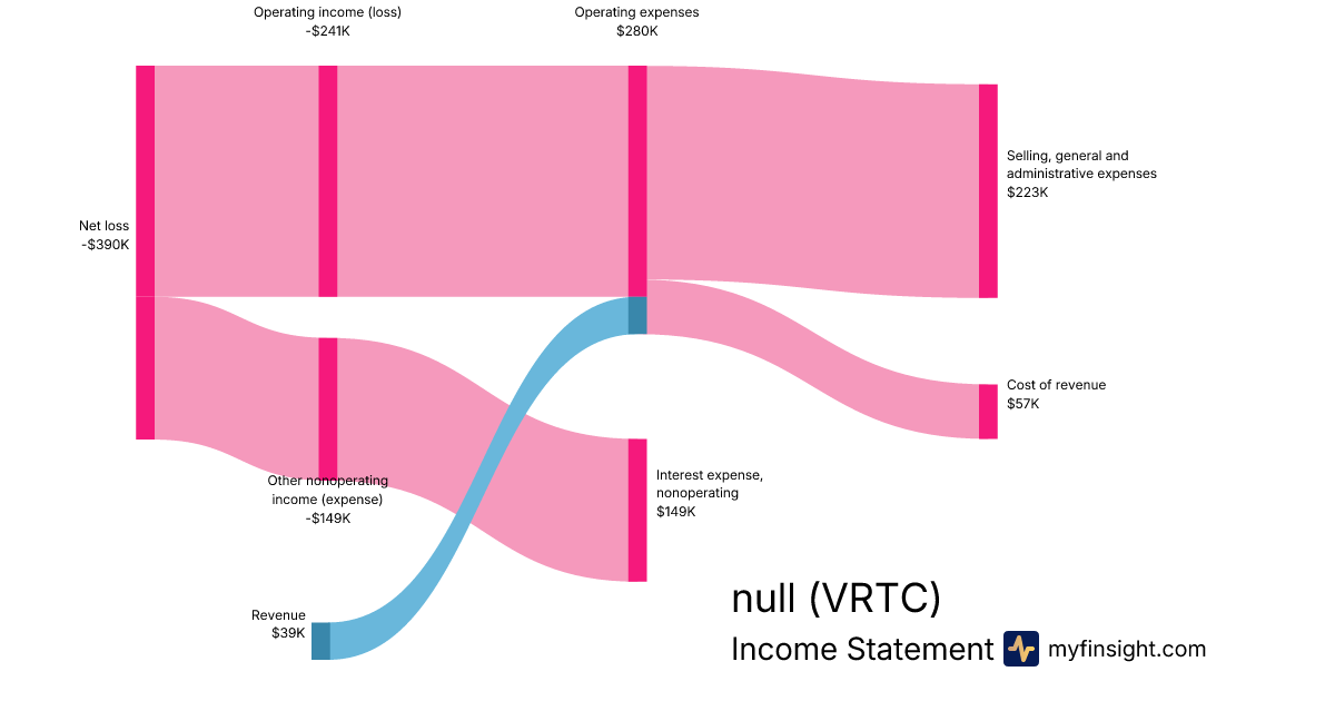 For the quarter ending 2024-09-30, VRTC made $39K in revenue. -$390K in net income. Net profit margin of -1000.00%.