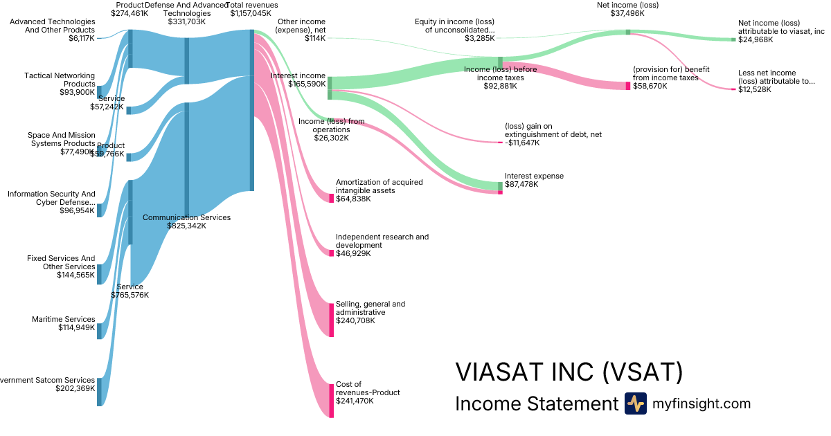 For the quarter ending 2025-12-31, VSAT made $1,157,045K in revenue. $24,968K in net income. Net profit margin of 2.16%.