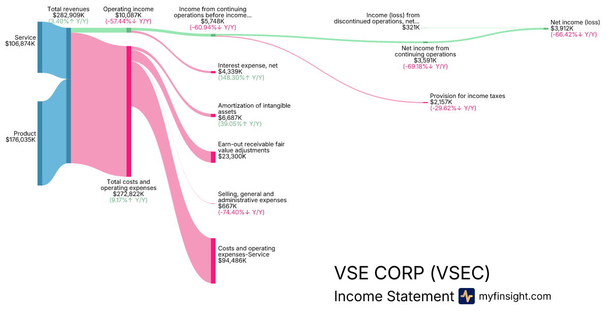 For the quarter ending 2025-09-30, VSEC made $282,909,000 in revenue. $3,912,000 in net income. Net profit margin of 1.38%.