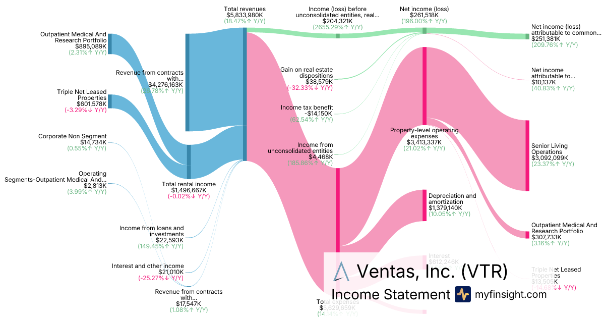 For the year ending 2025-12-31, VTR made $5,833,980K in revenue. $251,381K in net income. Net profit margin of 4.31%.