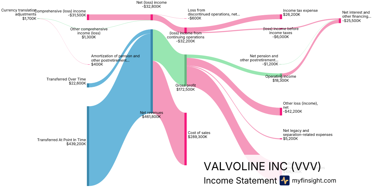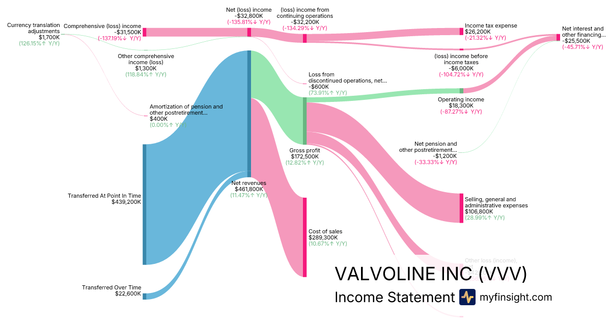 For the quarter ending 2025-12-31, VVV made $461,800K in revenue. -$31,500K in net income. Net profit margin of -6.82%.