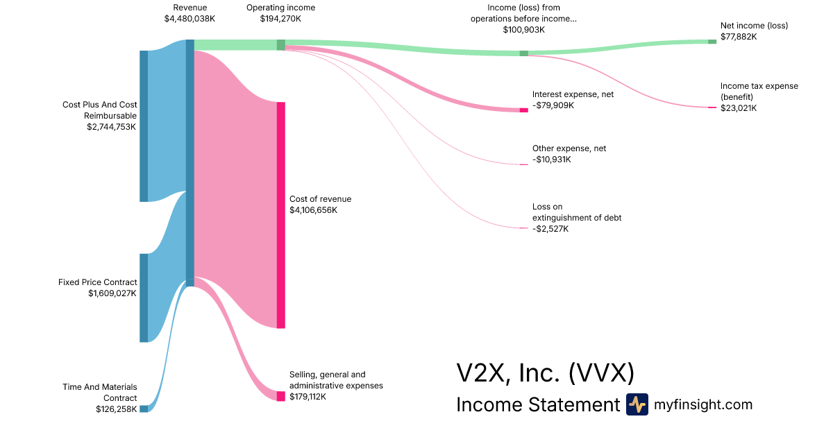 For the year ending 2025-12-31, VVX made $4,480,038K in revenue. $77,882K in net income. Net profit margin of 1.74%.
