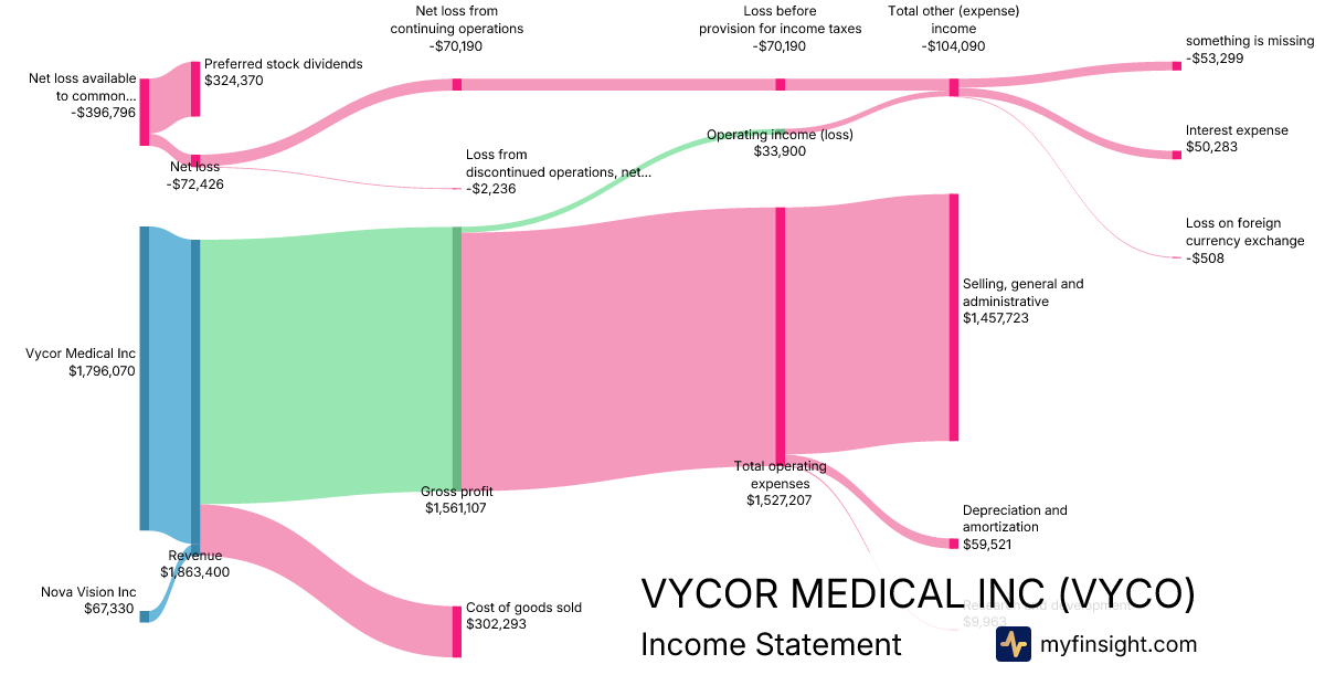 For the year ending 2025-12-31, VYCO made $1,863,400 in revenue. -$396,796 in net income. Net profit margin of -21.29%.