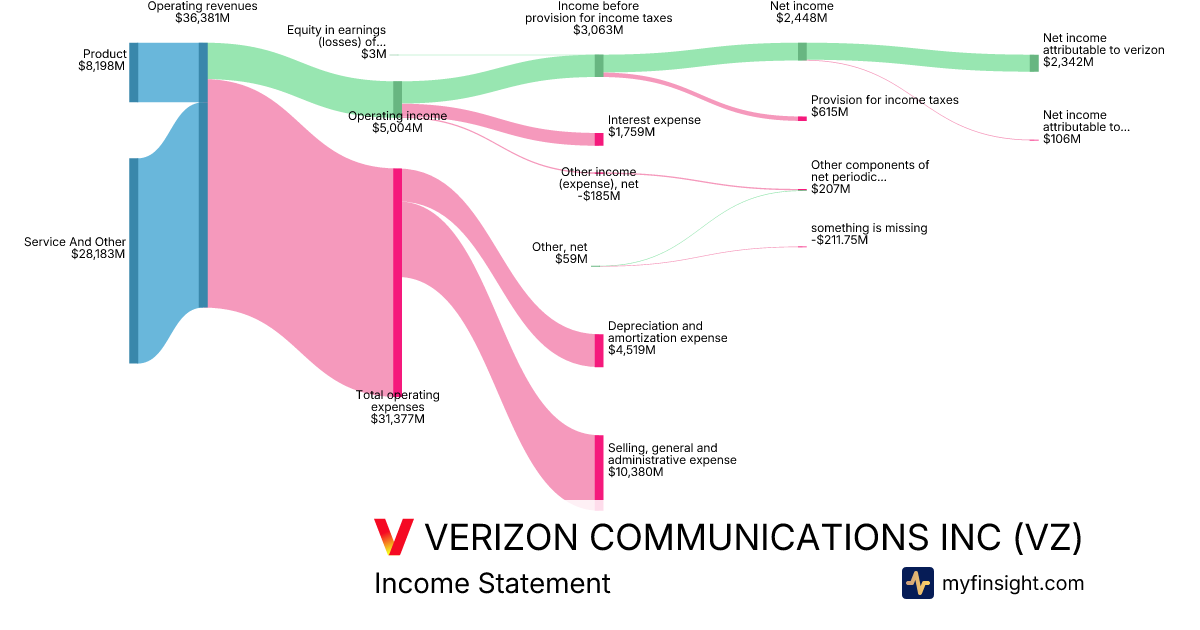 For the year ending 2025-12-31, VZ made $138,191M in revenue. $17,174M in net income. Net profit margin of 12.43%.