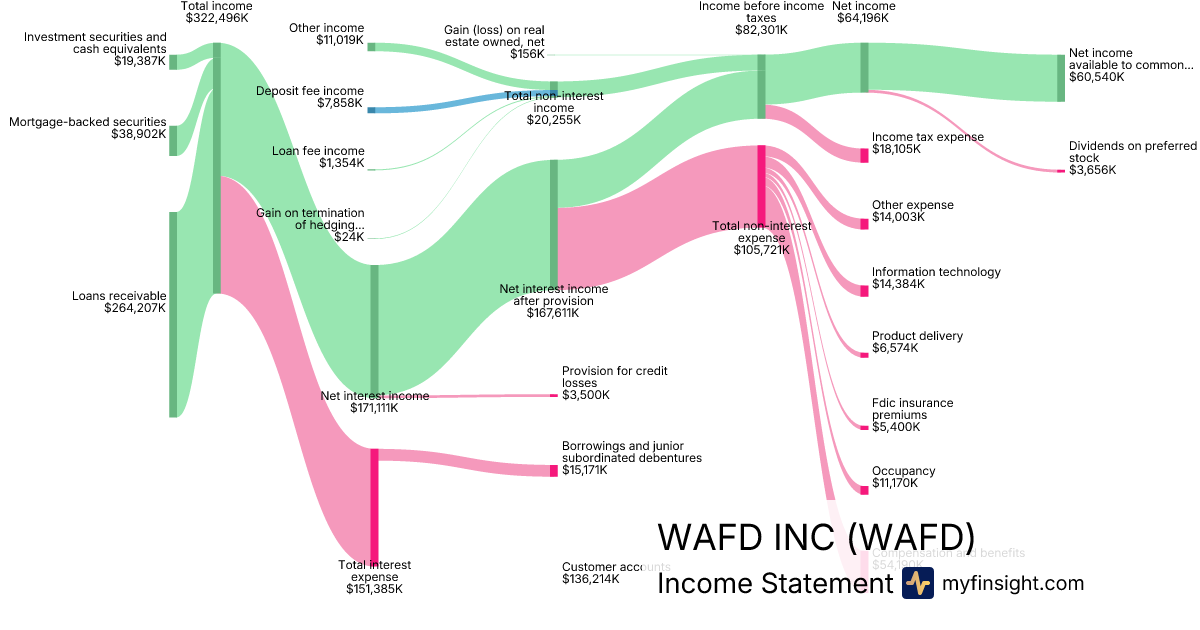 For the quarter ending 2025-12-31, WAFD made $600,013K in revenue. $60,540K in net income. Net profit margin of 10.09%.