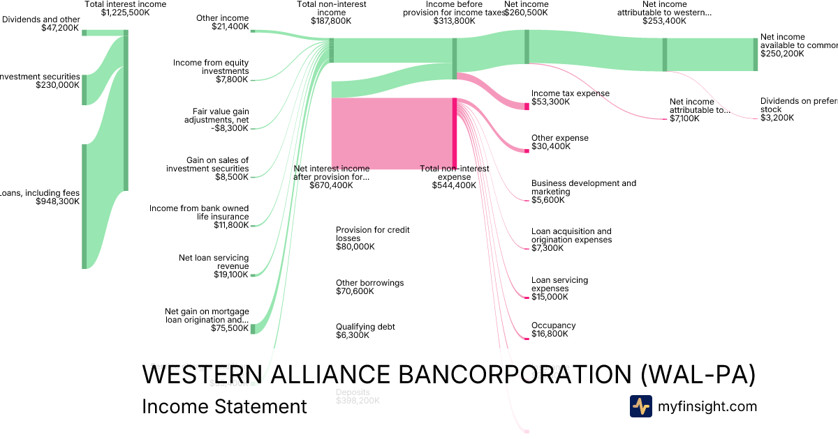 For the quarter ending 2025-09-30, WAL-PA made $2,416,200K in revenue. $250,200K in net income. Net profit margin of 10.36%.