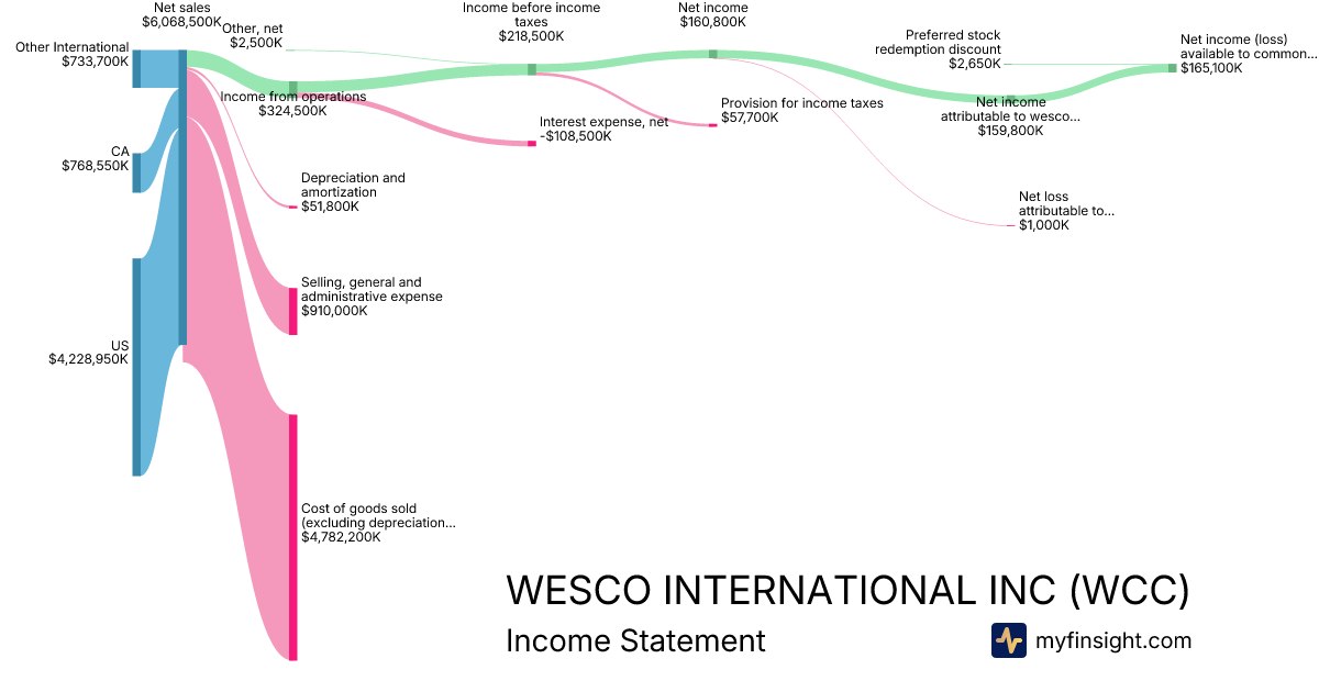 For the year ending 2025-12-31, WCC made $23,510,900K in revenue. $645,800K in net income. Net profit margin of 2.75%.