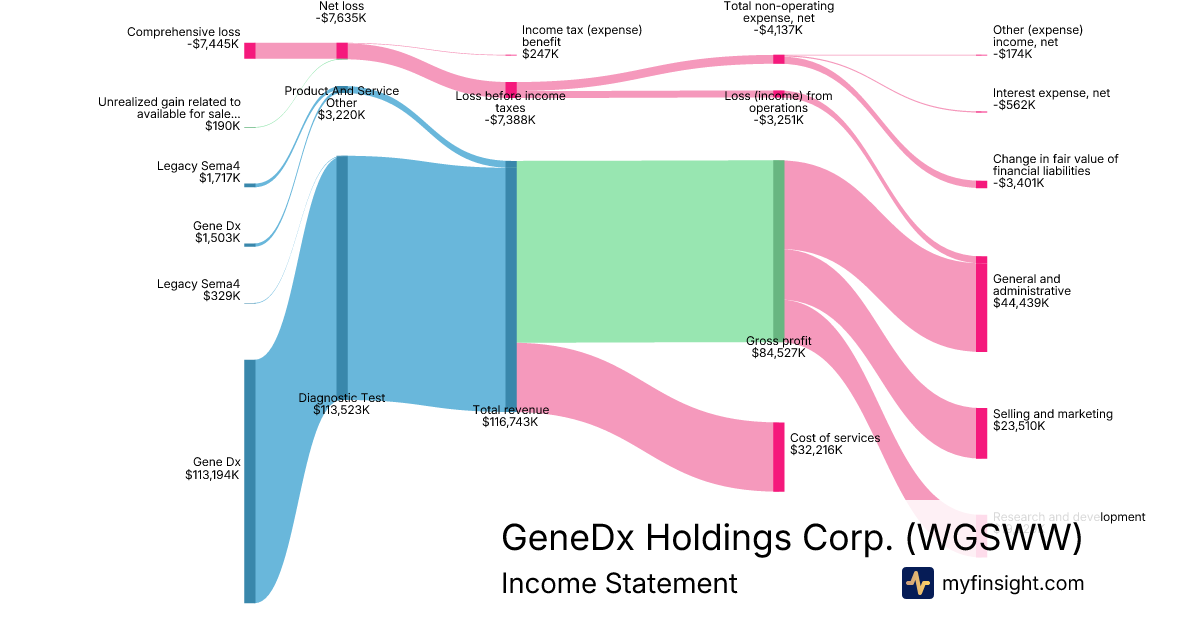 For the quarter ending 2025-09-30, WGSWW made $116,743K in revenue. -$7,445K in net income. Net profit margin of -6.38%.