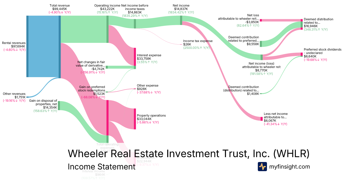 For the year ending 2025-12-31, WHLR made $99,445K in revenue. -$3,850K in net income. Net profit margin of -3.87%.