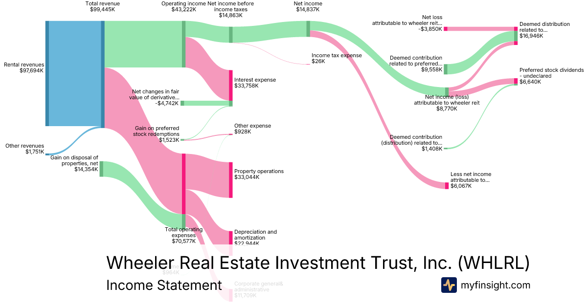 For the year ending 2025-12-31, WHLRL made $99,445K in revenue. -$3,850K in net income. Net profit margin of -3.87%.