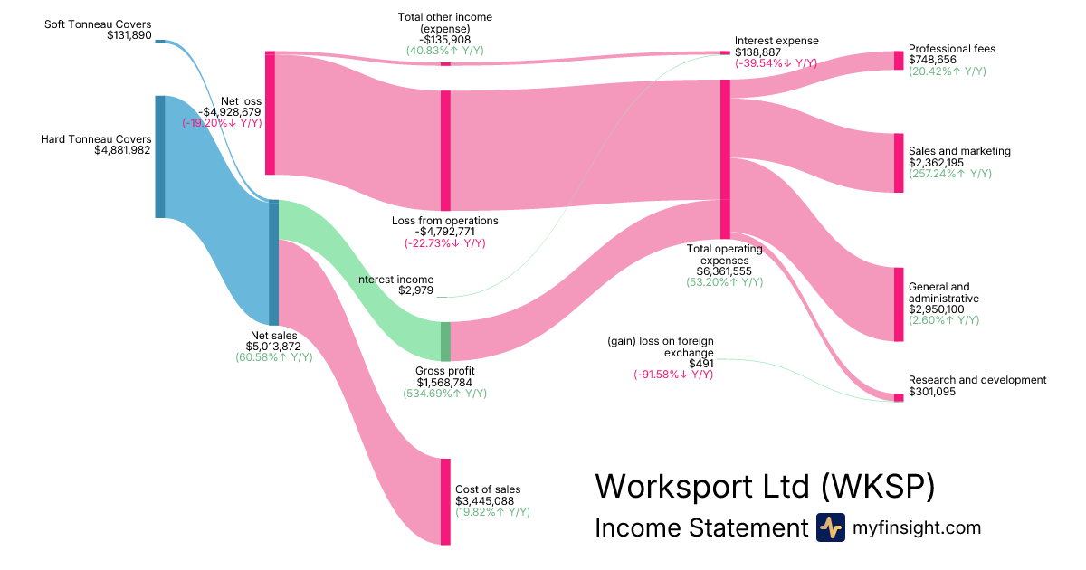 For the quarter ending 2025-09-30, WKSP made $5,013,872 in revenue. -$4,928,679 in net income. Net profit margin of -98.30%.