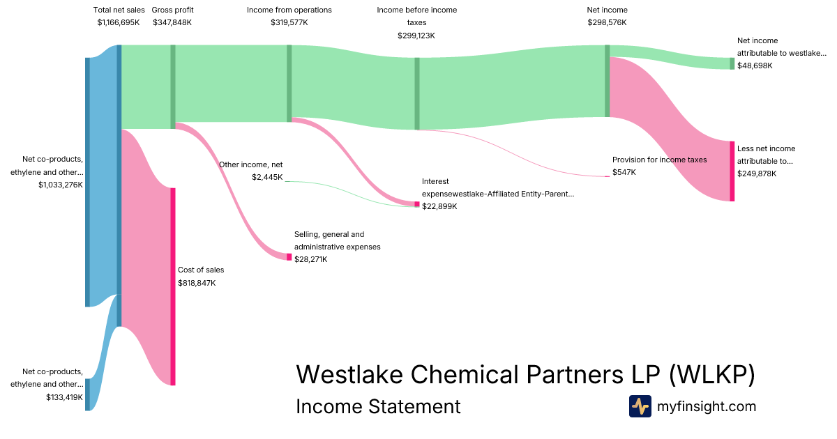 For the year ending 2025-12-31, WLKP made $1,166,695K in revenue. $48,698K in net income. Net profit margin of 4.17%.
