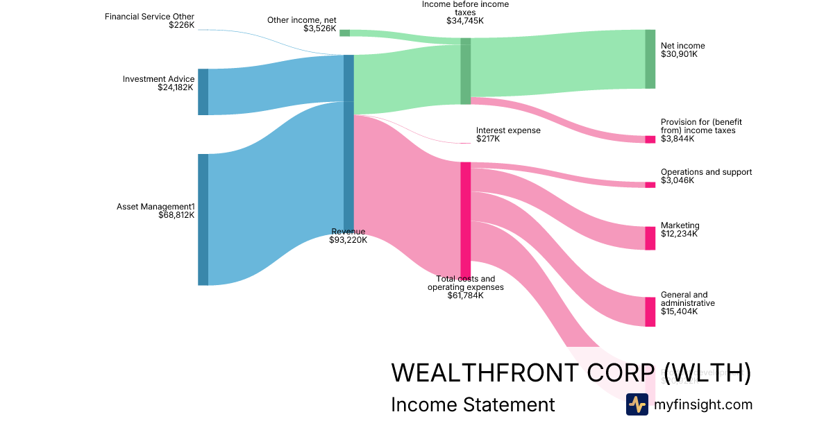For the quarter ending 2025-10-31, WLTH made $93,220K in revenue. $30,901K in net income. Net profit margin of 33.15%.