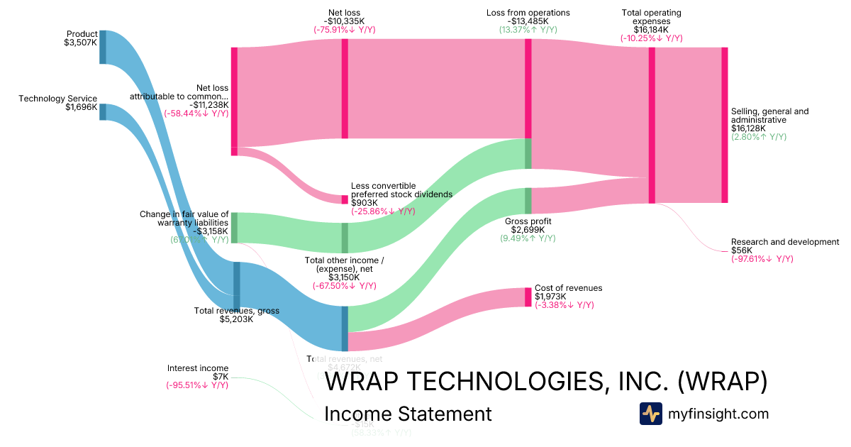 For the year ending 2025-12-31, WRAP made $4,672K in revenue. -$11,238K in net income. Net profit margin of -240.54%.
