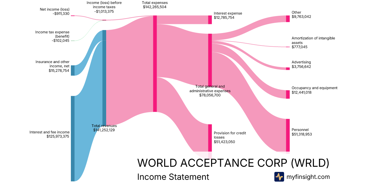 For the quarter ending 2025-12-31, WRLD made $141,252,129 in revenue. -$911,330 in net income. Net profit margin of -0.65%.