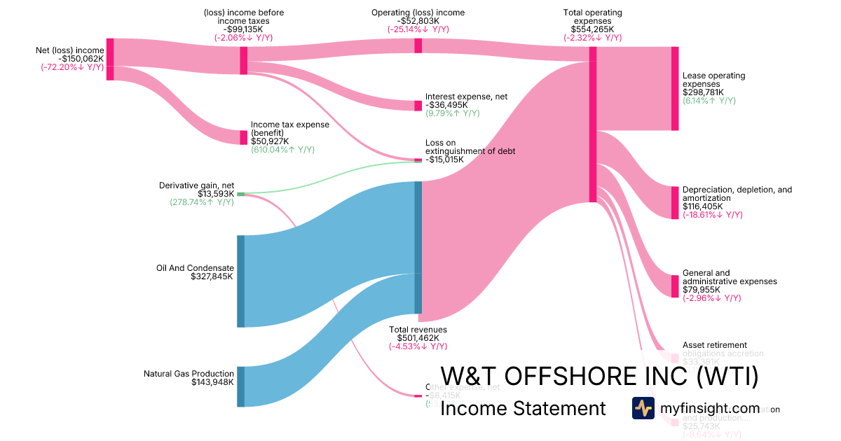 For the year ending 2025-12-31, WTI made $501,462K in revenue. -$150,062K in net income. Net profit margin of -29.92%.