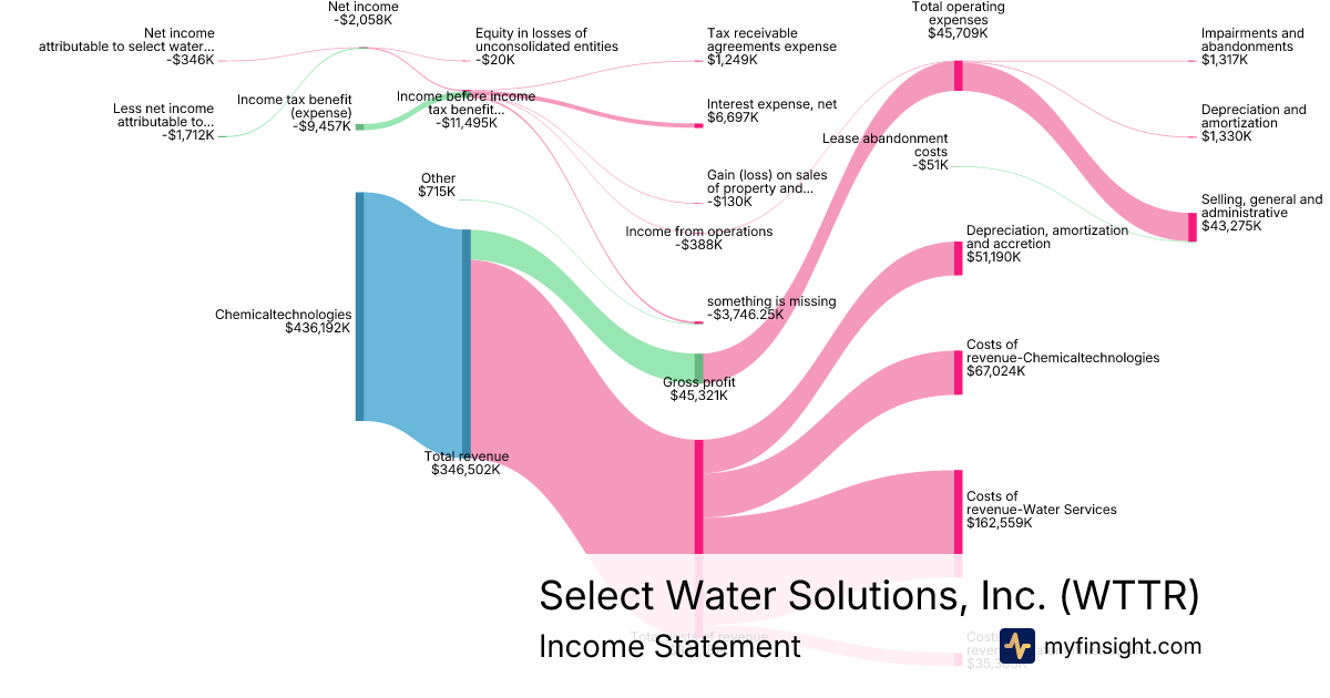 For the year ending 2025-12-31, WTTR made $1,407,344K in revenue. $21,223K in net income. Net profit margin of 1.51%.