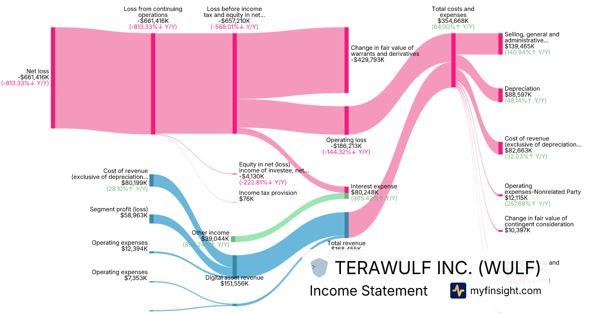 For the year ending 2025-12-31, WULF made $168,455K in revenue. -$661,416K in net income. Net profit margin of -392.64%.
