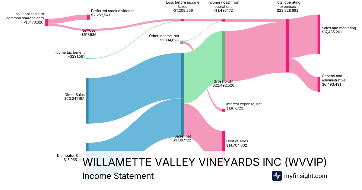 For the year ending 2025-12-31, WVVIP made $37,197,122 in revenue. -$3,170,626 in net income. Net profit margin of -8.52%.
