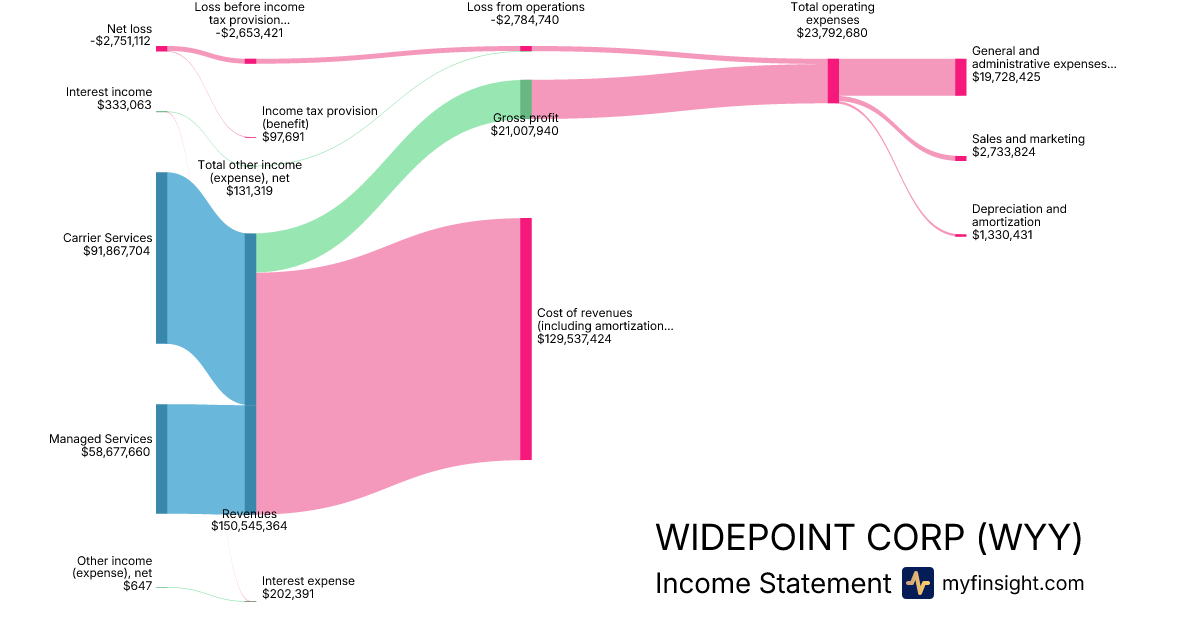 For the year ending 2025-12-31, WYY made $150,545,364 in revenue. -$2,751,112 in net income. Net profit margin of -1.83%.