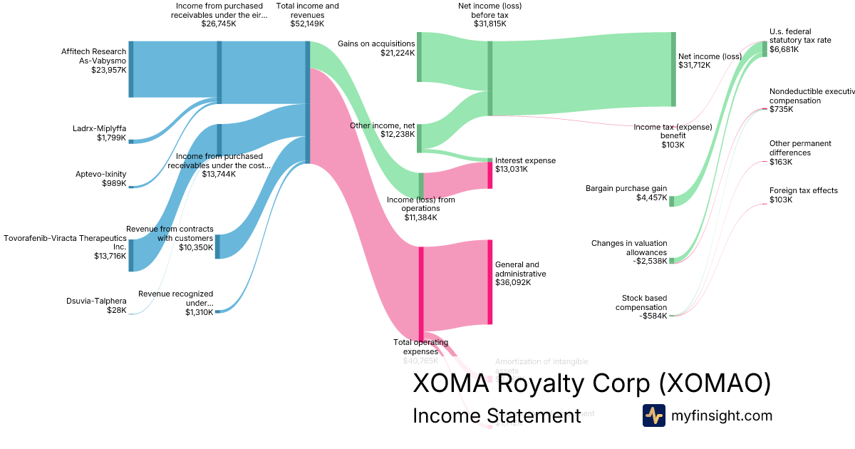 For the year ending 2025-12-31, XOMAO made $52,149K in revenue. $31,712K in net income. Net profit margin of 60.81%.
