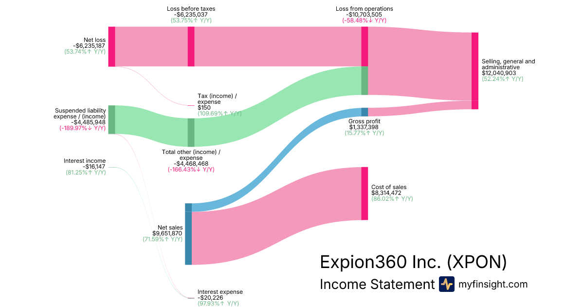 For the year ending 2025-12-31, XPON made $9,651,870 in revenue. -$6,235,187 in net income. Net profit margin of -64.60%.