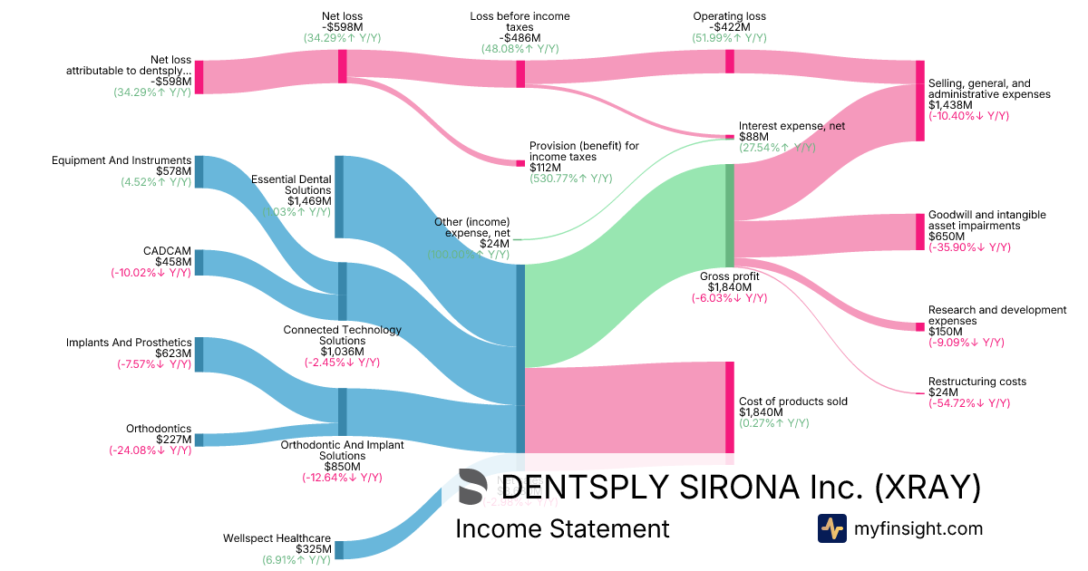 For the year ending 2025-12-31, XRAY made $3,680M in revenue. -$598M in net income. Net profit margin of -16.25%.
