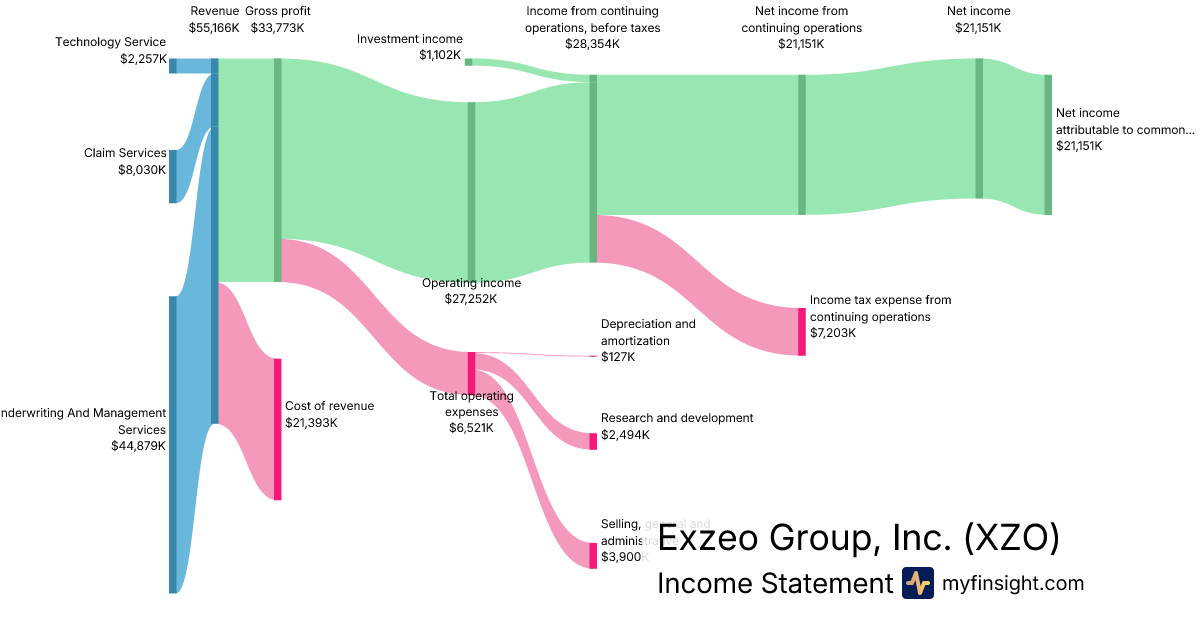 For the quarter ending 2025-09-30, XZO made $55,166K in revenue. $21,151K in net income. Net profit margin of 38.34%.