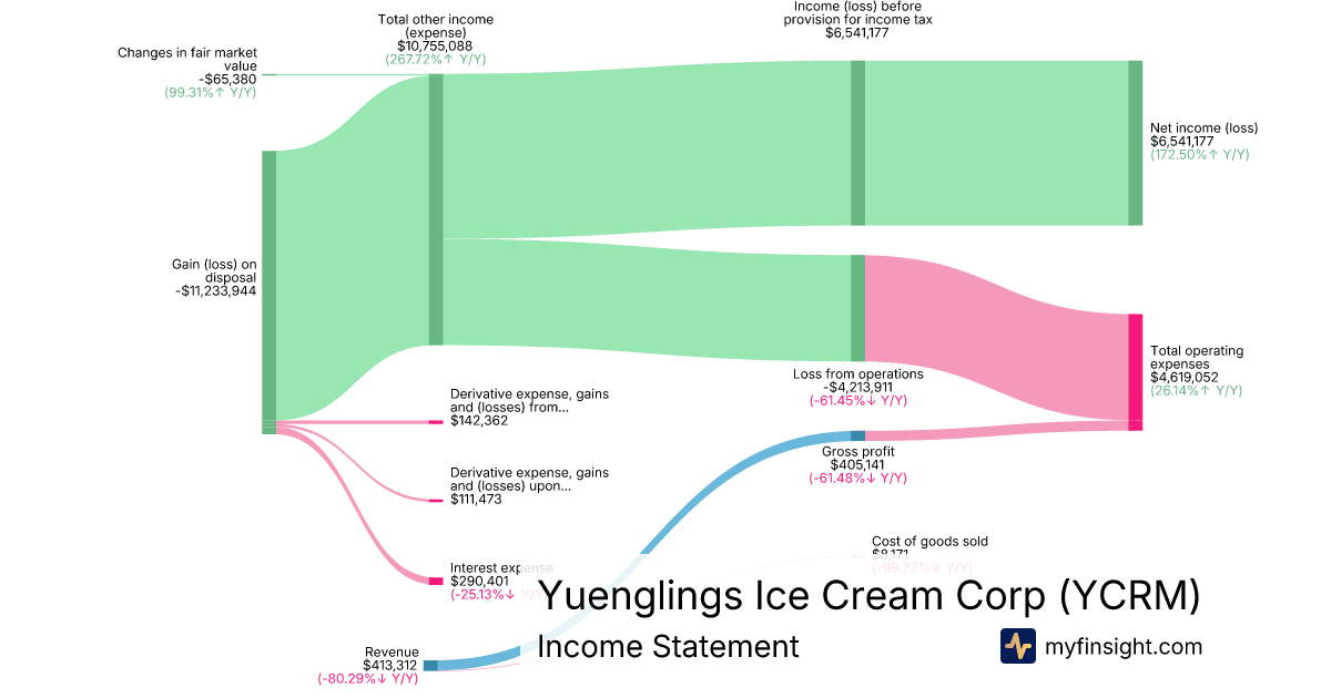 For the quarter ending 2025-03-31, YCRM made $413,312 in revenue. $6,541,177 in net income. Net profit margin of 1582.62%.