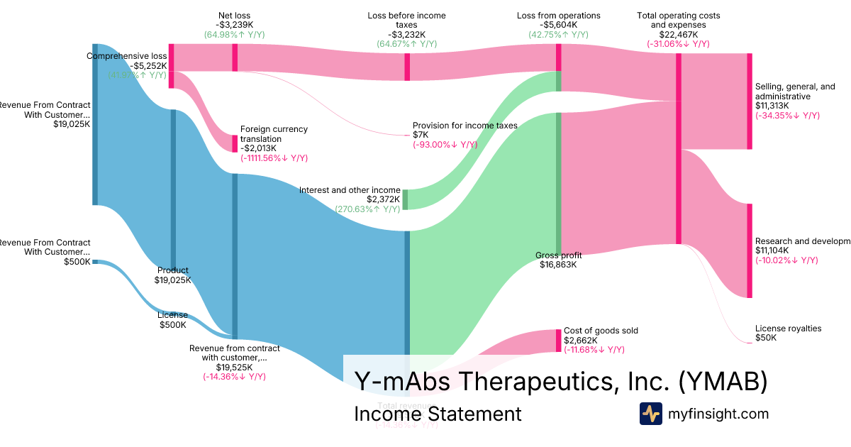 For the quarter ending 2025-06-30, YMAB made $19,525K in revenue. -$5,252K in net income. Net profit margin of -26.90%.