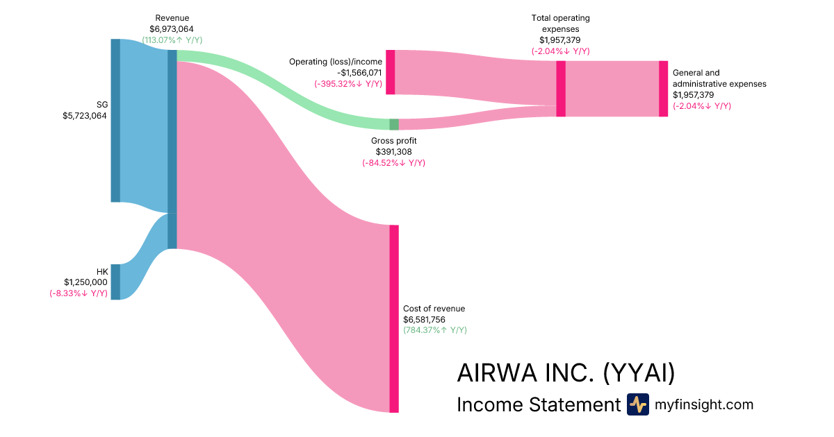For the quarter ending 2026-01-31, YYAI made $6,973,064 in revenue. -$1,566,071 in net income. Net profit margin of -22.46%.