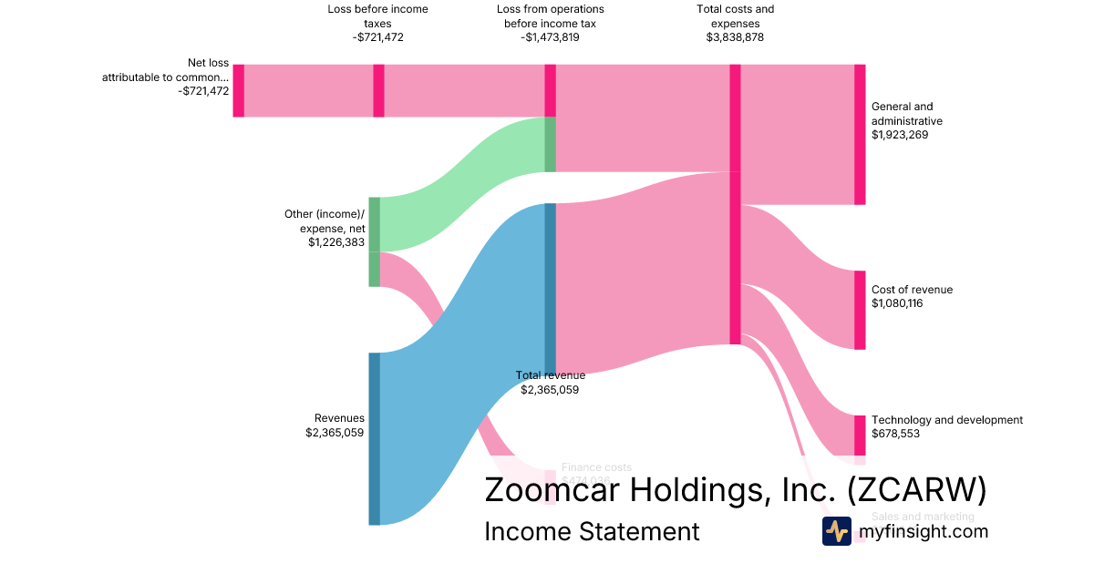 For the quarter ending 2025-12-31, ZCARW made $2,365,059 in revenue. -$721,472 in net income. Net profit margin of -30.51%.