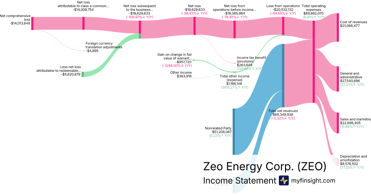 For the year ending 2025-12-31, ZEO made $69,349,938 in revenue. -$14,013,649 in net income. Net profit margin of -20.21%.